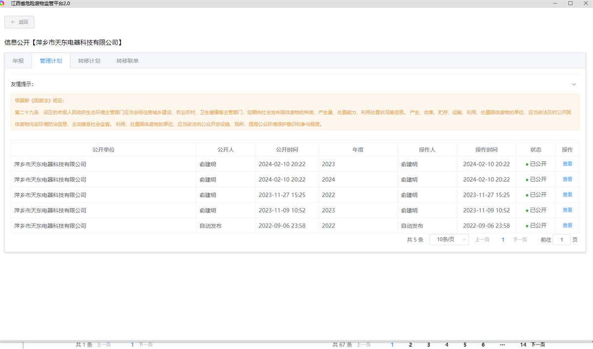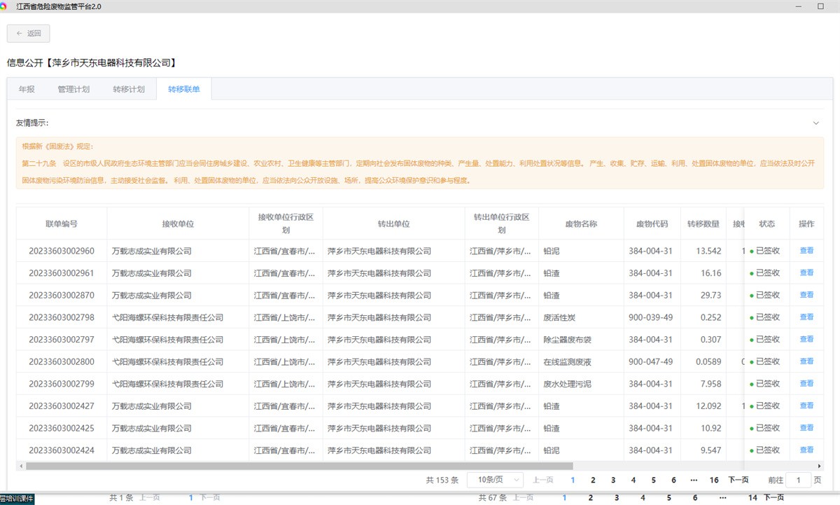 江西危險廢物管理平臺信息公開(kāi)2023年